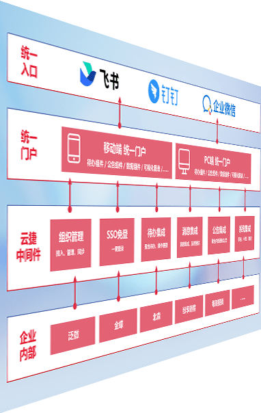 对协作平台提供支持服务,,,支持企业应用与协作平台对接,,包含组织同步、、、消息集成、、、、待办集成等。。支持目前主流的协作平台:钉钉、、、企微和飞书。。